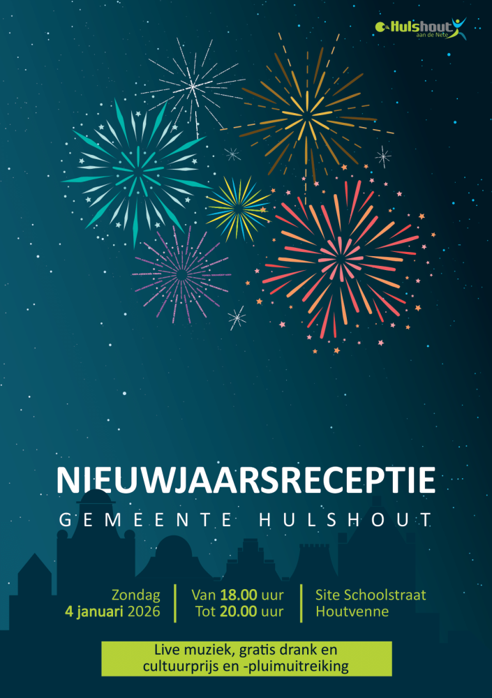 Ben jij klaar om 2026 feestelijk in te zetten? Lokaal bestuur Hulshout nodigt je met veel plezier op de nieuwjaarsreceptie op zondag 4 januari 2026 uit, van 18.00 uur tot 20.00 uur op site Schoolstraat. Iedereen is van harte welkom!